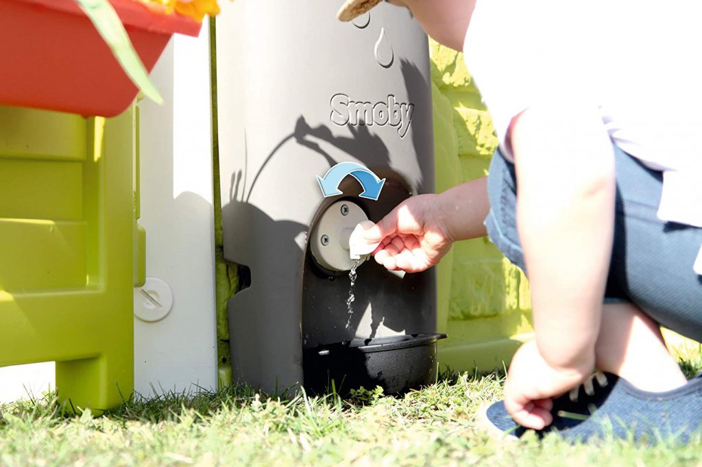 ¡Un recoge-aguas que se puede adaptar a las casas de Smoby para incorporar nuevas funciones de juego! que incluye un canalón con llave de paso y una regadera.