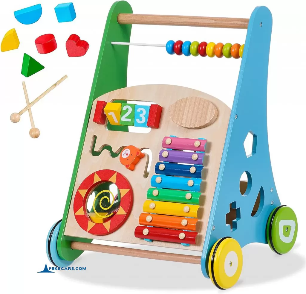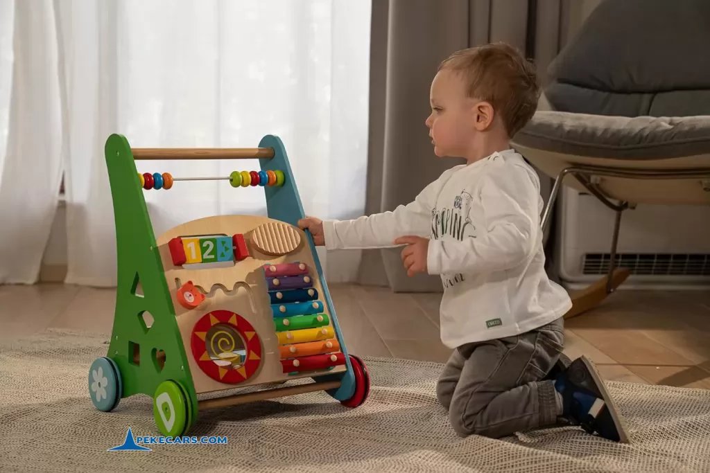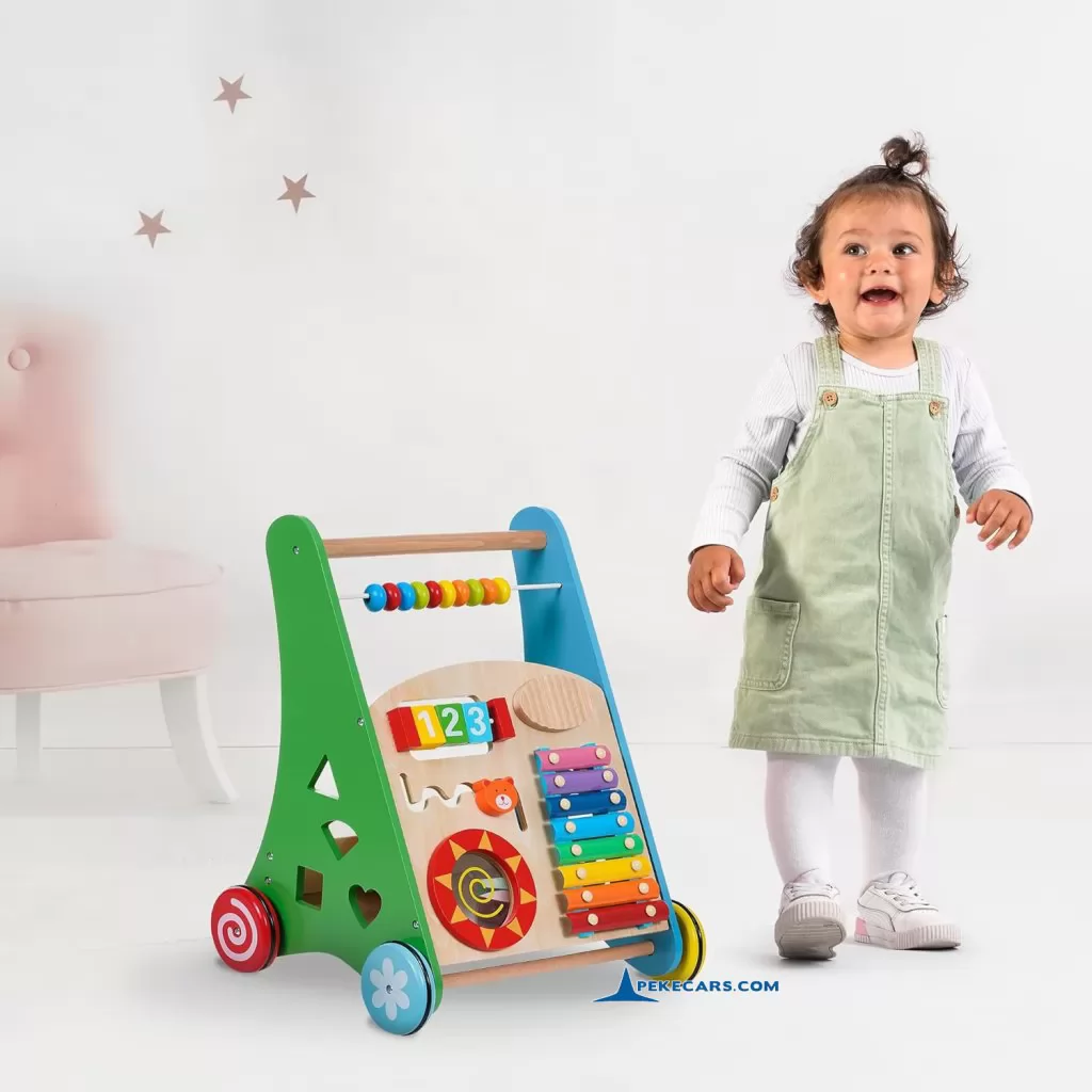 Andador para bebes a partir de 12 meses equipado con un centro de actividades con elementos musicales y educativos.