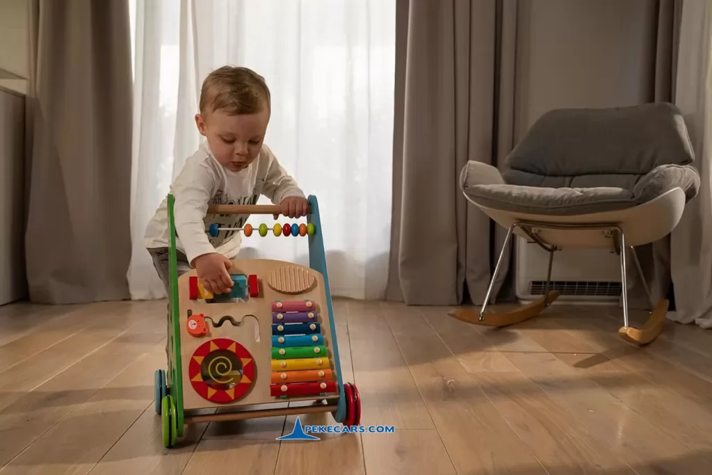 Este andador incluye un pequeño tambor y un xilofono para estimular la creatividad desde pequeños y hacer aflorar su talento musical.