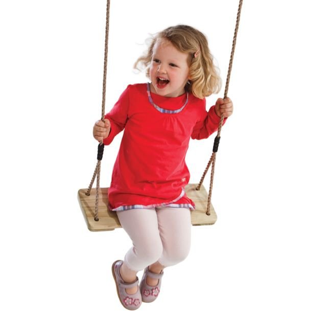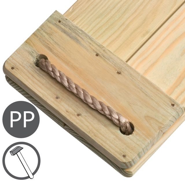 Asiento de madera con cuerda sintética para uso doméstico.  Está pensado para estructuras hasta un máximo de 2,5 m de altura.