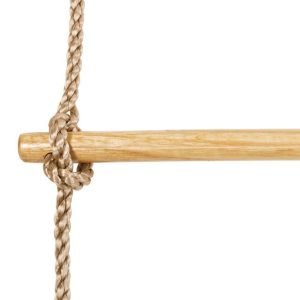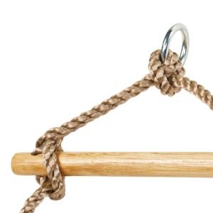 Es un asiento con cuerdas regulables y que se junta a la estructura del columpio con una anilla.