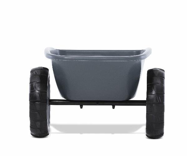 Volquete de plástico sujetado por una estructura metálica y con dos ruedas de EVA.