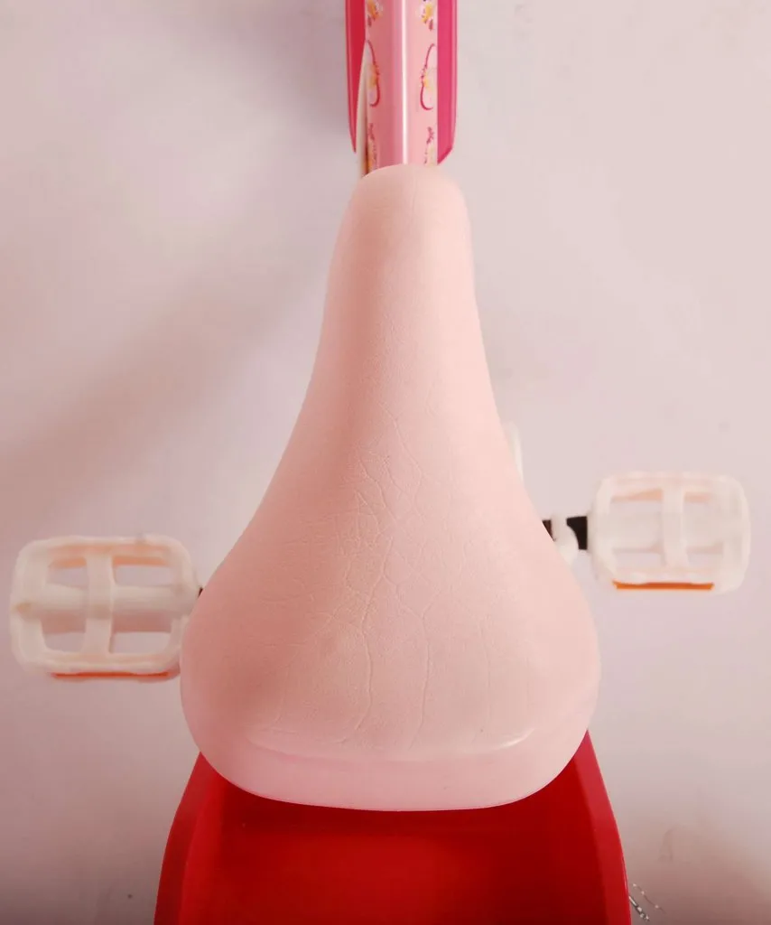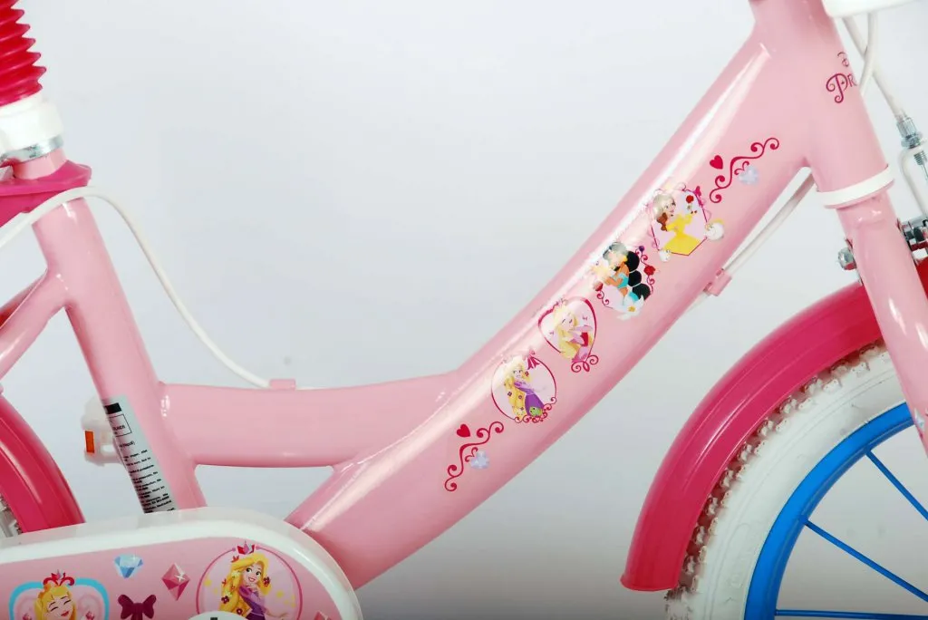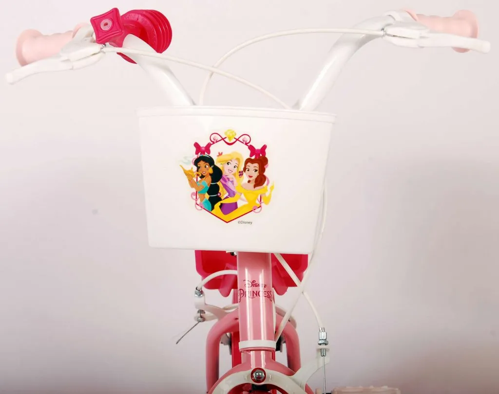 ¡La seguridad es lo primero! Es por eso que esta genial bicicleta no tiene freno de contrapedal sino dos frenos de mano y ruedas de entrenamiento extraíbles. Además, la bicicleta tiene una divertida bocina. Esta bonita bicicleta en color rosa de Princesas de Disney está equipada con un asiento para muñecas y una cesta delantera. Para disfrutar de la bicicleta el mayor tiempo posible, el sillín y el manillar son regulables en altura.