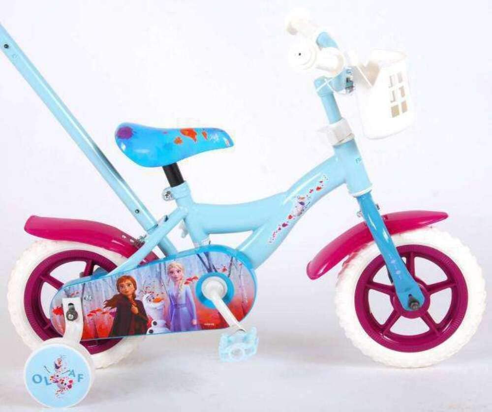 Bicicleta con un fantástico diseño de Frozen 2 de 10 pulgadas con barra de empuje. Producto con licencia oficial. La barra de empuje es una gran ayuda para que los padres ayuden a su hijo a aprender a andar en bicicleta.