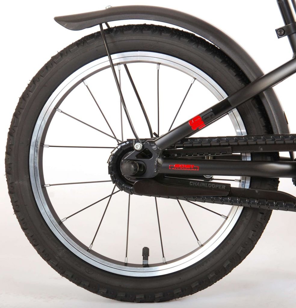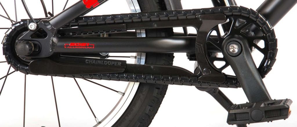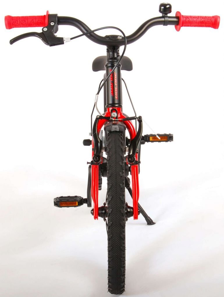 Es por eso que esta genial bicicleta tiene un freno de mano y un freno de contrapedal. La bicicleta también tiene reflectores en las ruedas. También hemos pensado en la comodidad. La hermosa bicicleta Blaster negra y roja tiene un soporte para que tu bicicleta se mantenga limpia y ordenada y un cuadro de aluminio extra liviano. Para asegurarte de que puedas disfrutar de tu bicicleta el mayor tiempo posible, la tija del sillín es extralarga para que la bicicleta dure aún más y el manillar es ajustable en altura.