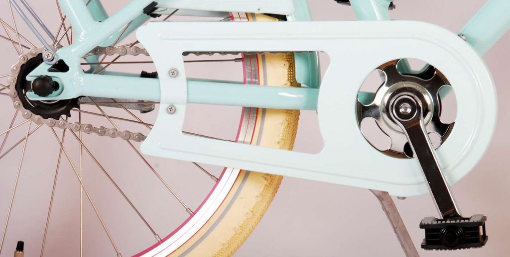 Es por eso que esta genial bicicleta tiene un freno de mano y un freno de contrapedal. También tiene iluminación delantera y trasera a pilas y un bonito timbre. También hemos pensado en la comodidad. La hermosa bicicleta azul claro Oma Classic tiene un candado resistente, un práctico portaequipajes delantero y trasero con correas de liberación rápida y un soporte para que tu bicicleta se mantenga limpia y ordenada.