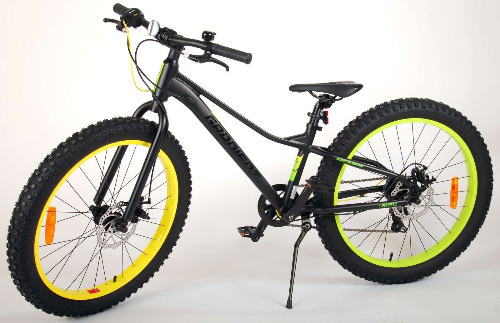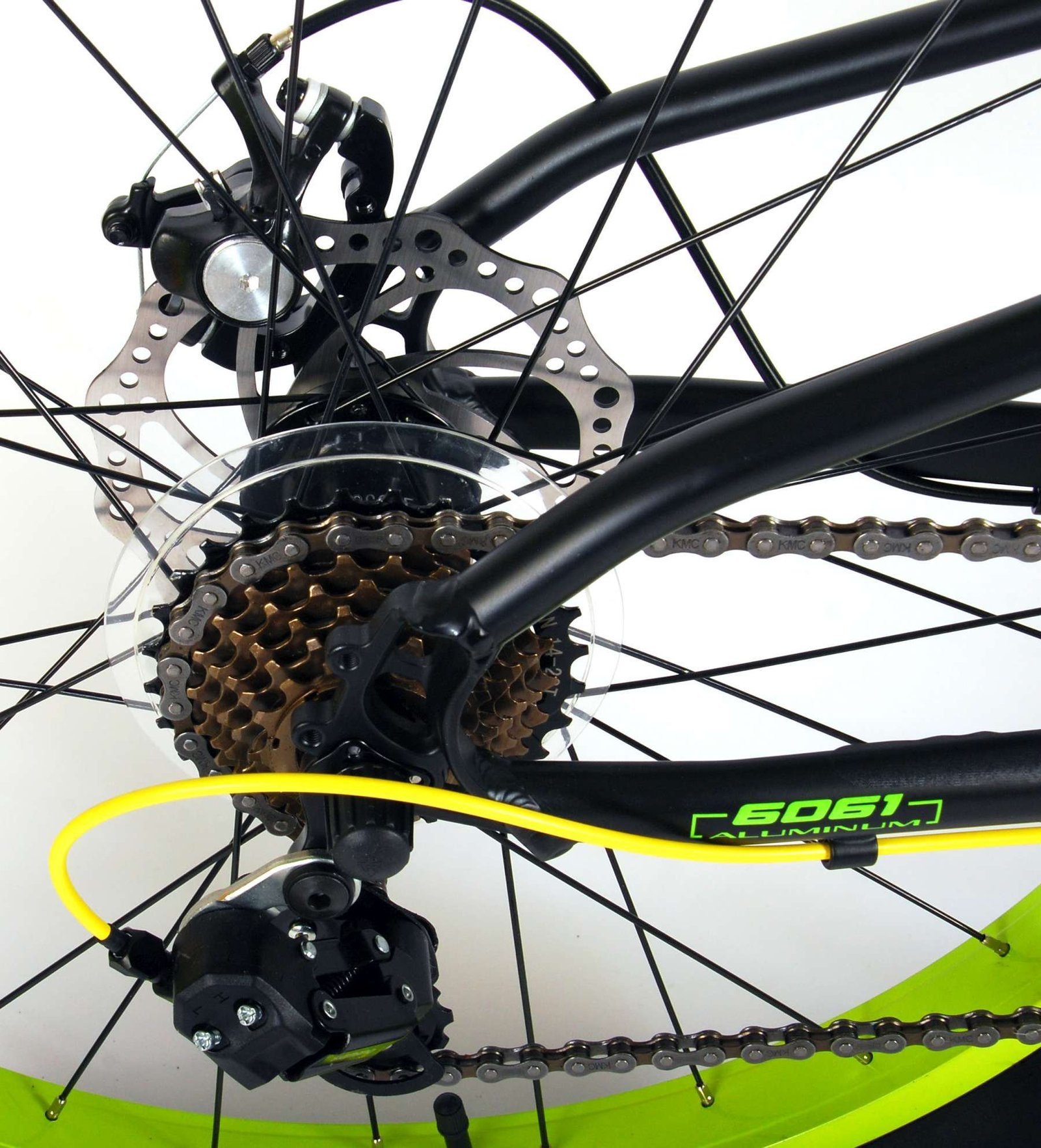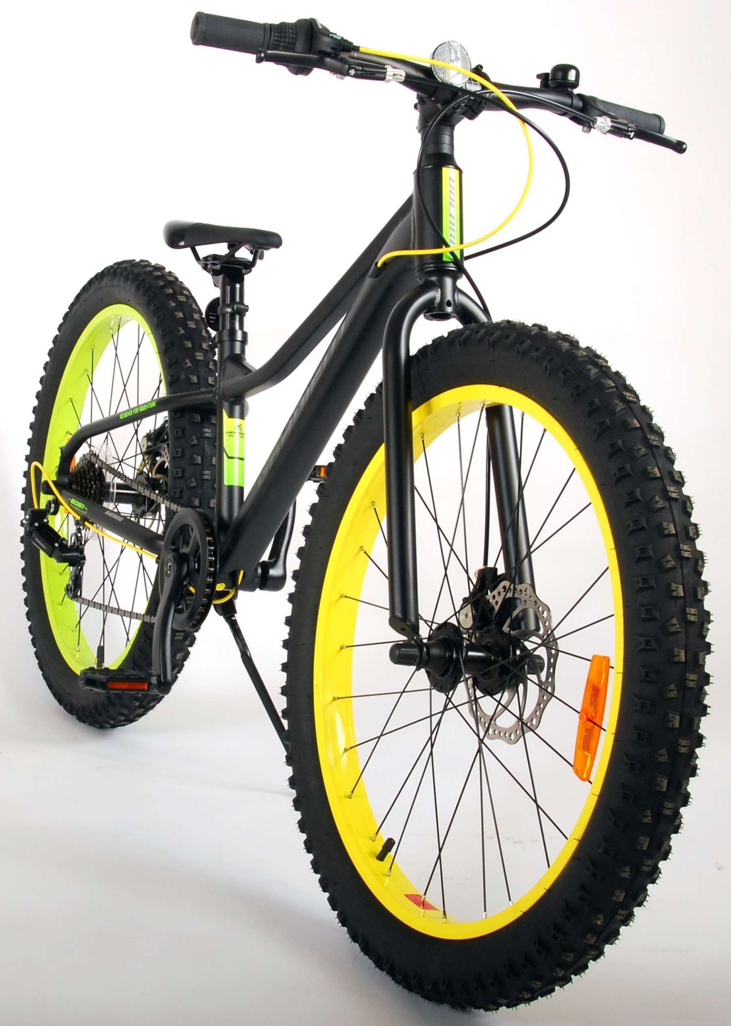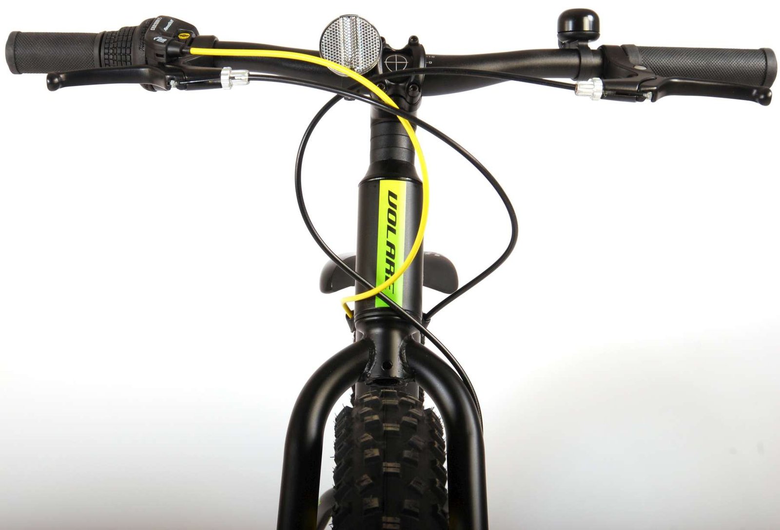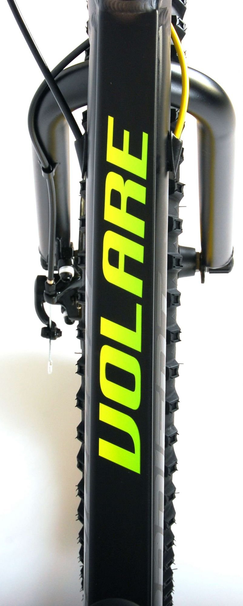 Es por eso que esta genial bicicleta no tiene un freno de pedal trasero sino dos frenos de mano. Además, la moto tiene reflectores delanteros, traseros y en las ruedas y un bonito timbre. La potencia del manillar inclinada proporciona una mejor vista de la carretera, pero por lo tanto no es ajustable en altura. También se ha pensado en la comodidad. La bicicleta Volare negra con detalles en amarillo y verde tiene un marco de aluminio extraligero, un soporte para que tu bicicleta permanezca en su lugar, llantas extra anchas, 7 velocidades y manijas suaves hechas de cratón.