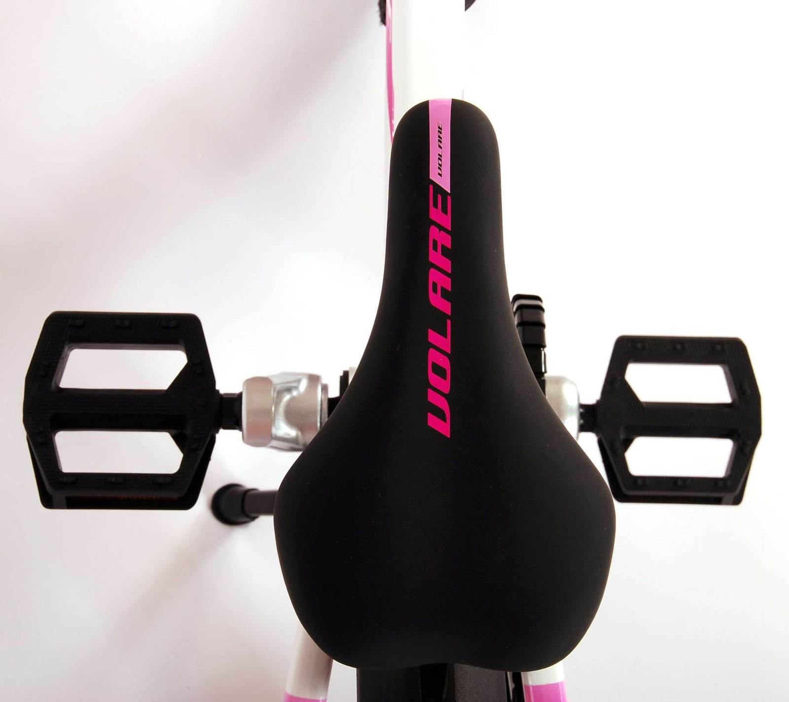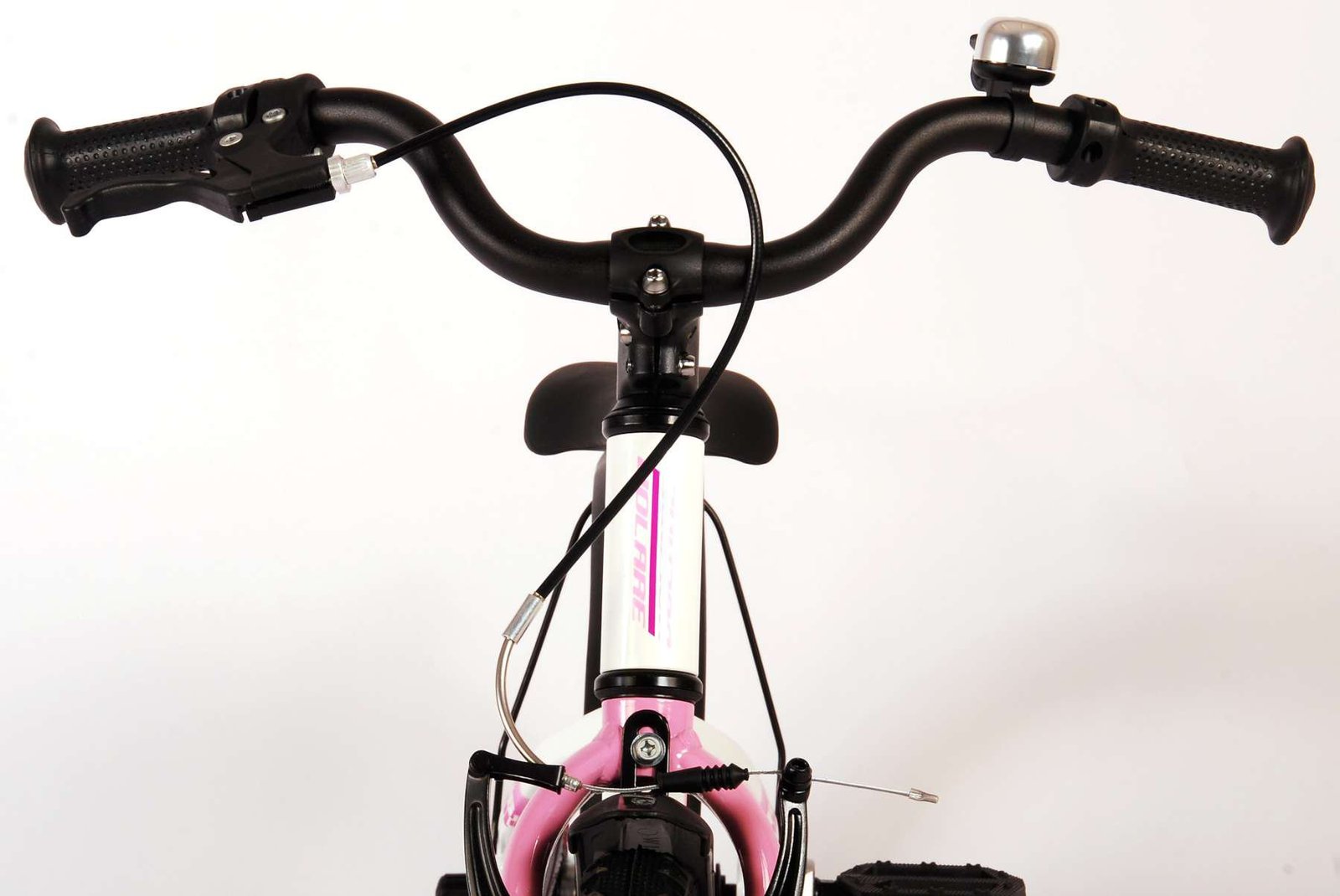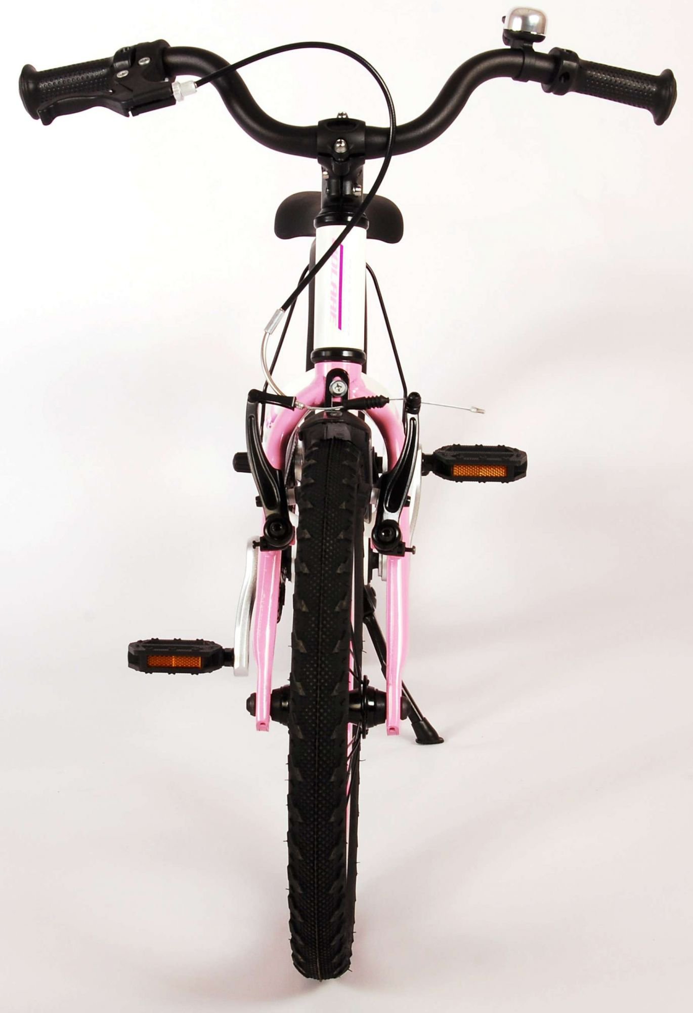 ¡La seguridad es lo primero! Es por eso que esta genial bicicleta tiene un freno de mano, un freno de contrapedal y un chainlooper. Además, la bicicleta tiene reflectores en los pedales y un lindo timbre. También se ha pensado en la comodidad. La hermosa bicicleta Volare blanca con detalles en rosa perla tiene un cuadro de aluminio extraligero (¡solo pesa 5,9 kilos!), un sillín suave y cómodo, puños de cratón y un soporte resistente para que tu bicicleta siempre se mantenga ordenada. Para disfrutar de la bicicleta el mayor tiempo posible, cuenta con una tija de sillín extralarga para que la bicicleta crezca con el niño aún más larga (el manillar no es regulable en altura).