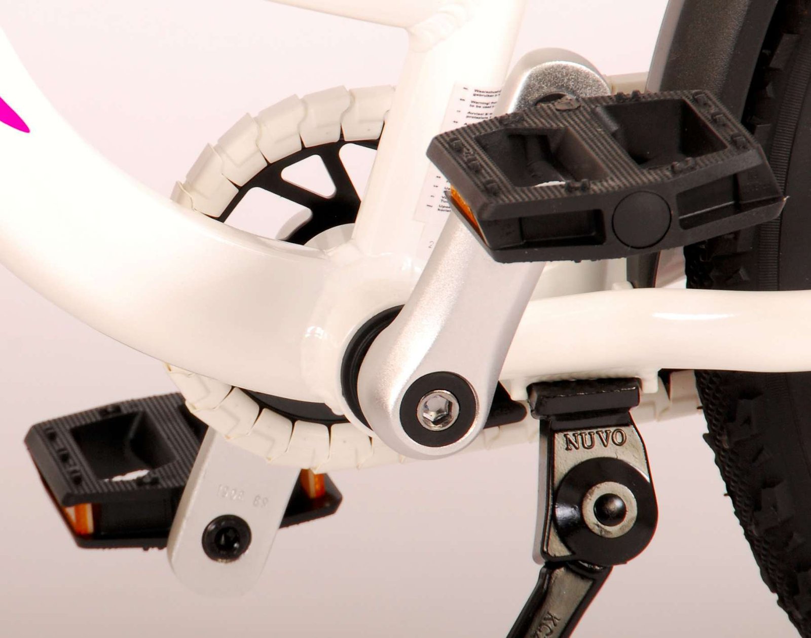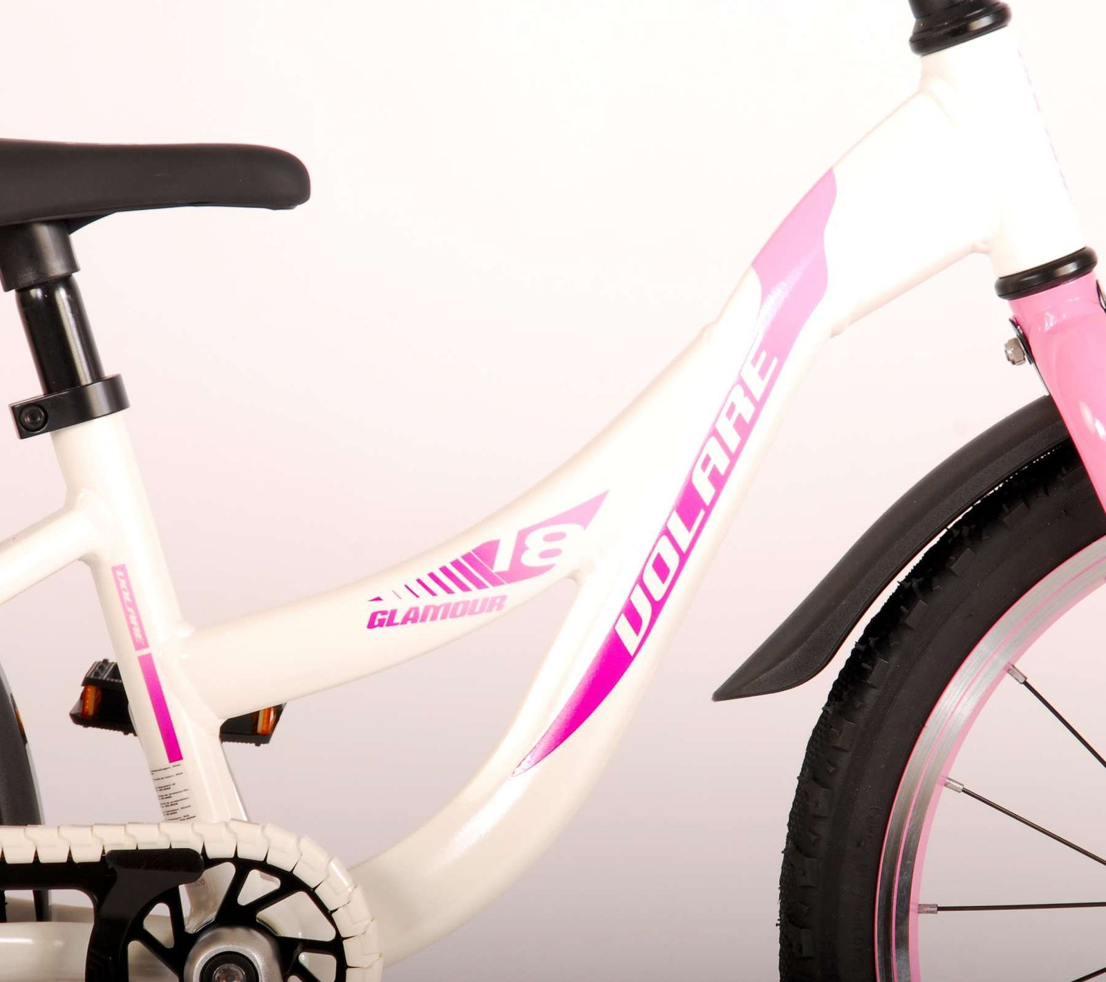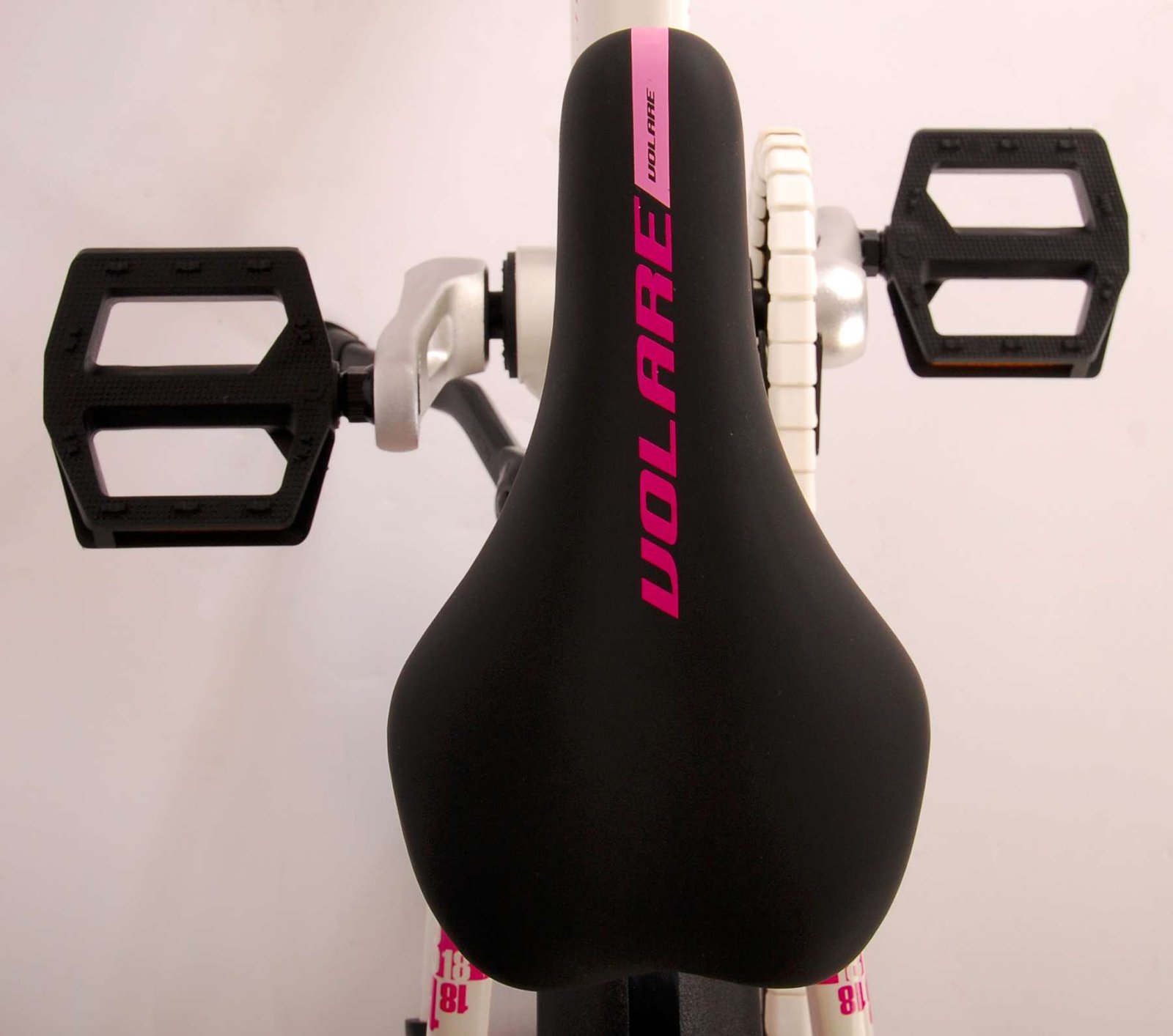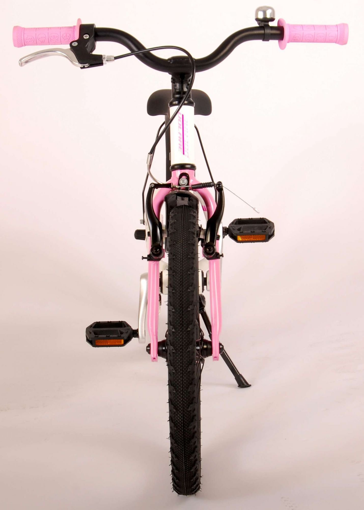 ¡La seguridad es lo primero! Es por eso que esta genial bicicleta tiene un freno de mano, un freno de contrapedal y un chainlooper. Además, la bicicleta tiene reflectores en los pedales y un lindo timbre. También se ha pensado en la comodidad. La hermosa bicicleta Volare blanca con detalles en rosa perla tiene un marco de aluminio extraligero (¡solo 6,5 kilos!), un sillín suave y cómodo, puños de cratón y un soporte resistente para que tu bicicleta siempre se mantenga ordenada. Para disfrutar de la bicicleta el mayor tiempo posible, cuenta con una tija de sillín extralarga para que la bicicleta crezca con el niño aún más larga (el manillar no es regulable en altura).