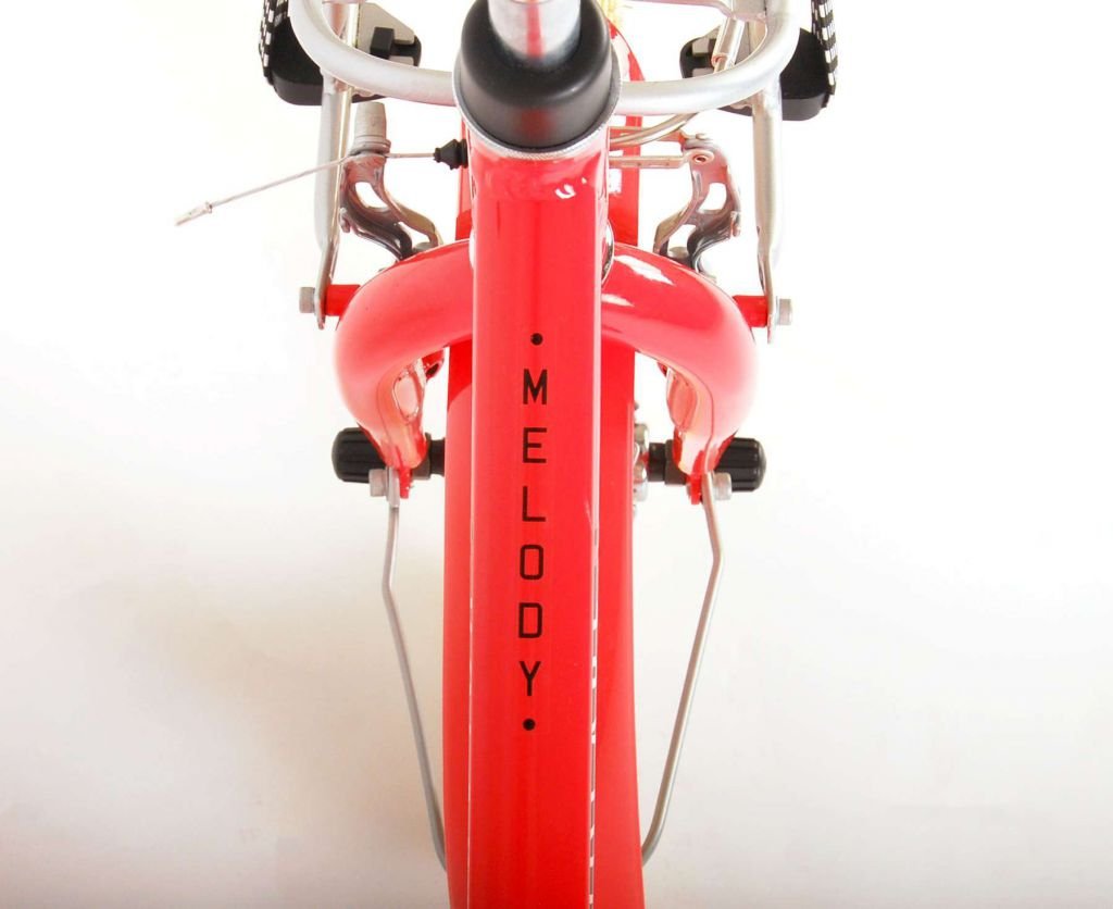¡La seguridad es lo primero! Es por eso que esta genial bicicleta tiene un freno de mano y un freno de contrapedal. La bicicleta también tiene reflectores en las ruedas y en la parte delantera y trasera de la bicicleta y un bonito timbre. También hemos pensado en la comodidad. La hermosa bicicleta Melody en rojo coral tiene un cuadro de aluminio extra liviano, un práctico soporte delantero con correas de liberación rápida y un soporte para que tu bicicleta se mantenga limpia y ordenada. Para que puedas disfrutar de tu bicicleta el mayor tiempo posible, el sillín es extralargo para que dure aún más y el manillar es regulable en altura.