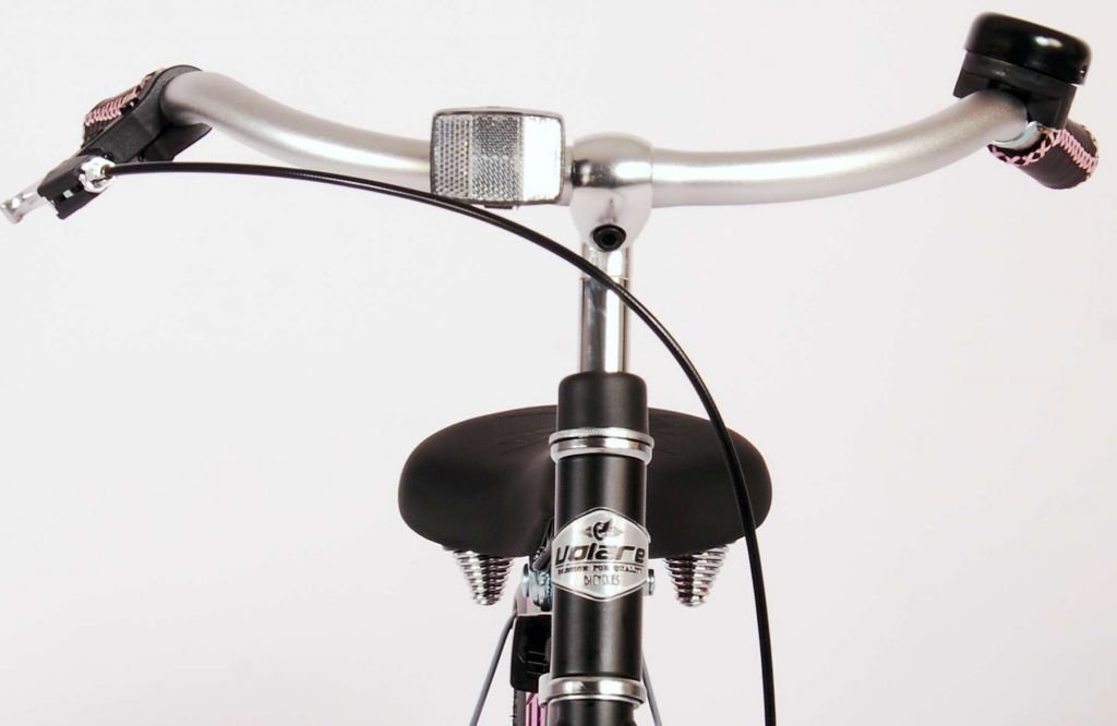 ¡La seguridad es lo primero! Es por eso que esta genial bicicleta tiene un protector de cadena cerrado para proteger los dedos. La bicicleta también tiene reflectores en los pedales. Esta bicicleta tiene freno de contrapedal y freno de mano.También hemos pensado en la comodidad. La hermosa bicicleta Miracle en negro y rosa mate tiene un cuadro de aluminio extra liviano, un soporte para que su bicicleta permanezca ordenada en su lugar y un sillín cómodo y suave. Para disfrutar de la bicicleta el mayor tiempo posible, el sillín y el manillar son regulables en altura.