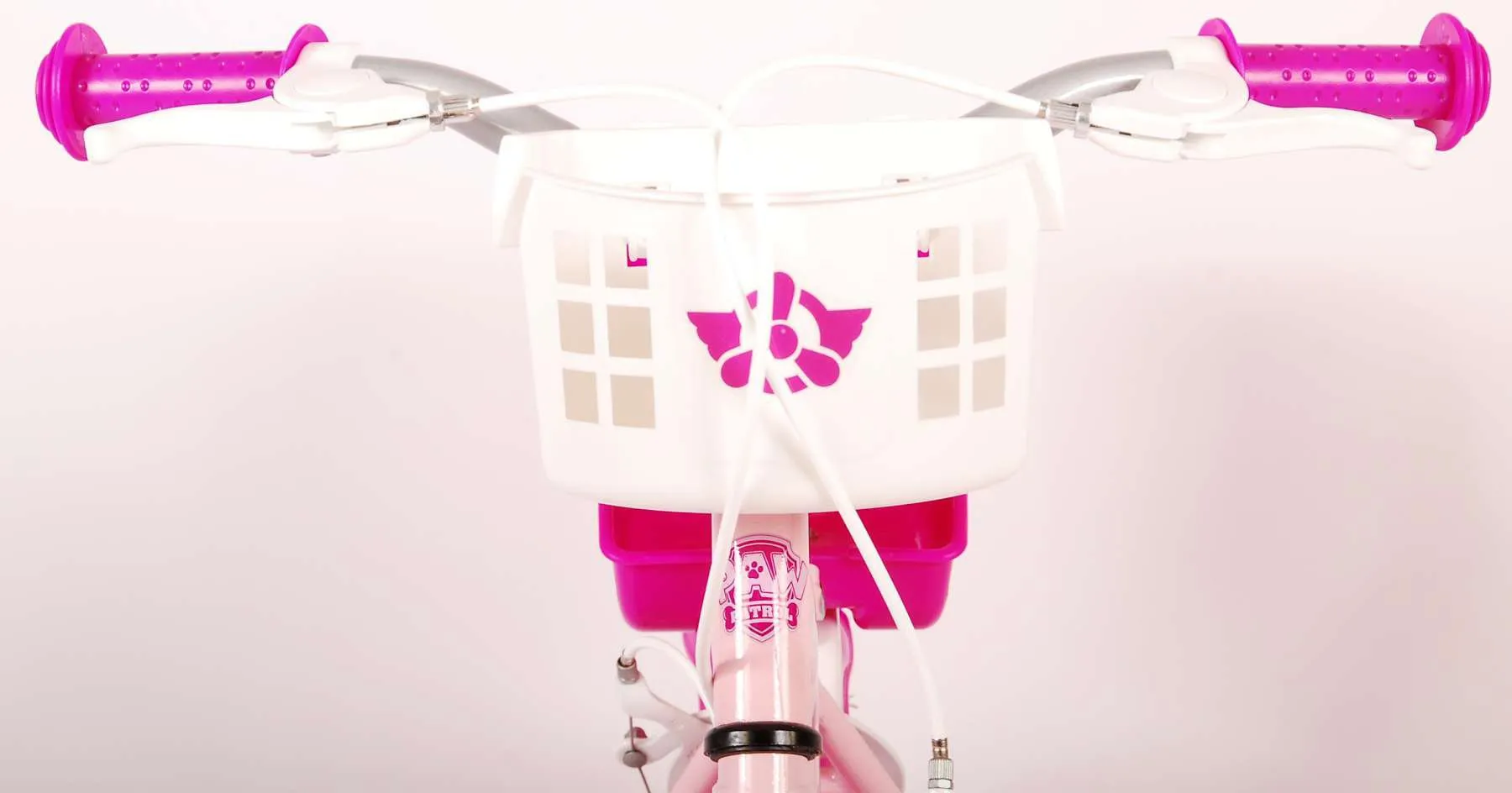 Es por eso que esta genial bicicleta tiene dos frenos de mano (sin freno de pedal trasero) y un protector de cadena cerrado. Además, la bicicleta tiene ruedas laterales desmontables para aprender a pedalear rápidamente y reflectores en los pedales. También se ha pensado en la comodidad. La bonita bicicleta rosa de la Patrulla Canina con toques morados tiene un sillín suave y cómodo, un asiento de muñeca debajo del sillín y una cesta para llevar todas tus piezas. Para disfrutar de la bicicleta el mayor tiempo posible, el sillín y el manillar son regulables en altura.