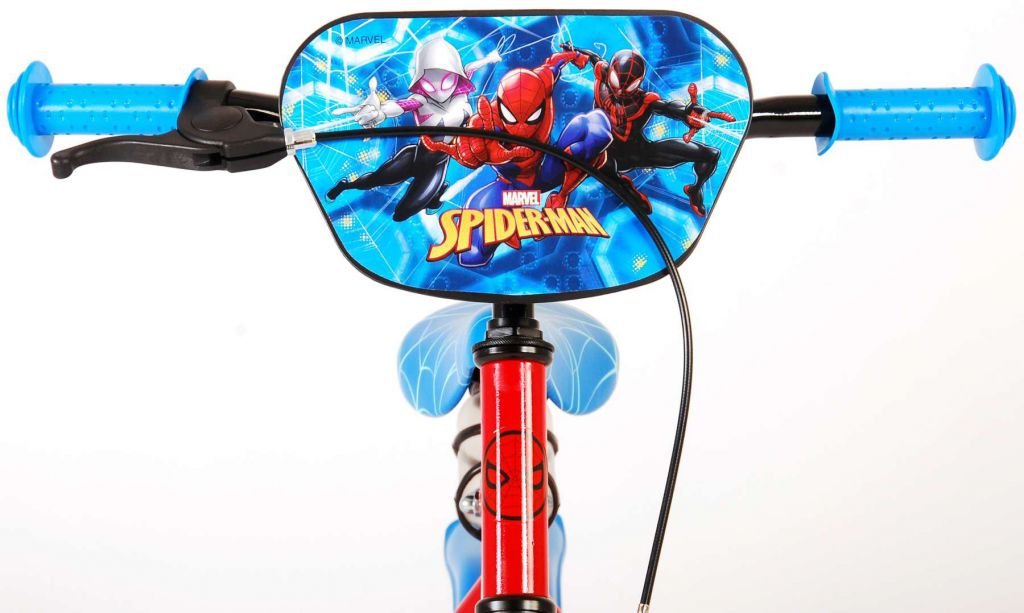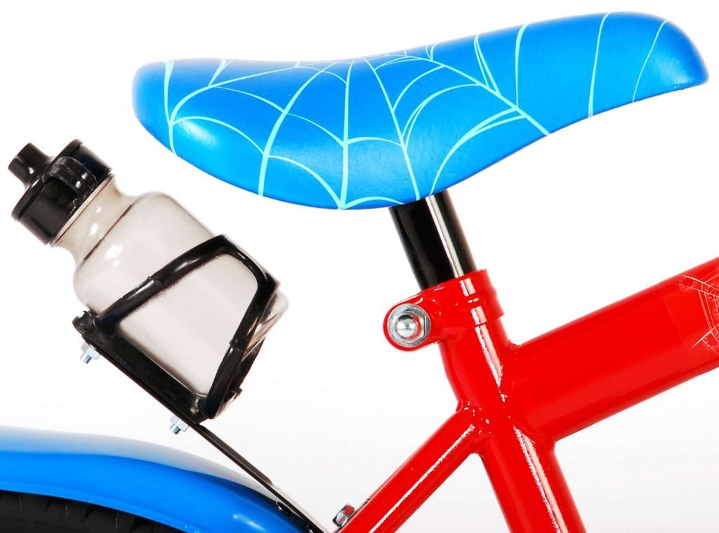 Es por eso que esta genial bicicleta tiene un freno de mano y un freno de contrapedal y una caja de cadena cerrada. Además, la bicicleta cuenta con ruedas laterales desmontables para un rápido aprendizaje sobre la bicicleta y reflectores en los pedales. También se ha pensado en la comodidad. La hermosa bicicleta roja de Spiderman con detalles en azul tiene un portabotellas debajo del sillín, un sillín agradablemente suave y un marco extra resistente que puede soportar golpes.