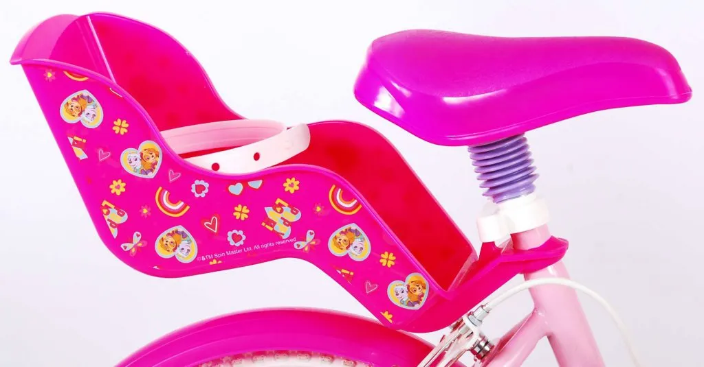 ¡La seguridad es lo primero! Es por eso que esta genial bicicleta no tiene freno de contrapedal sino dos frenos de mano y ruedas de entrenamiento extraíbles. Además, la bicicleta tiene una divertida bocina. Esta bonita bicicleta en color rosa de la Patrulla Canina está equipada con un asiento para muñecas y una cesta delantera. Para disfrutar de la bicicleta el mayor tiempo posible, el sillín y el manillar son regulables en altura.