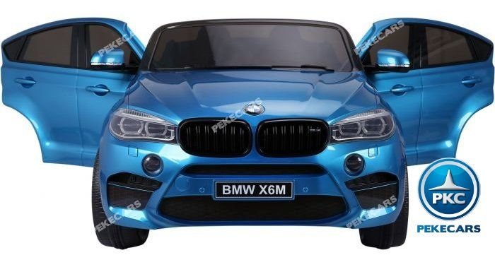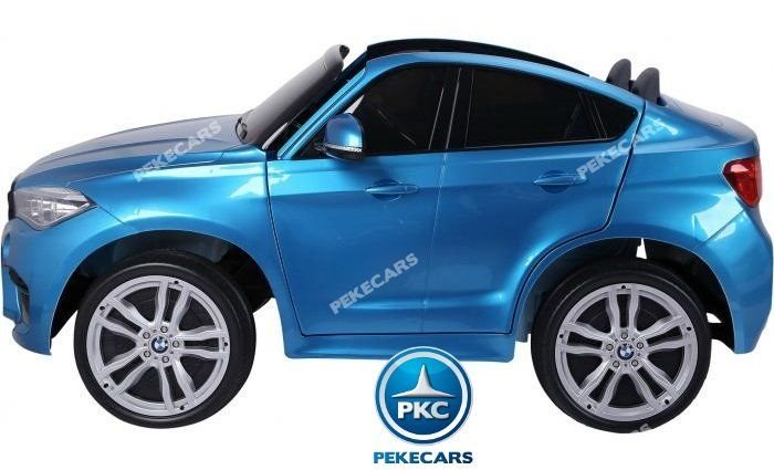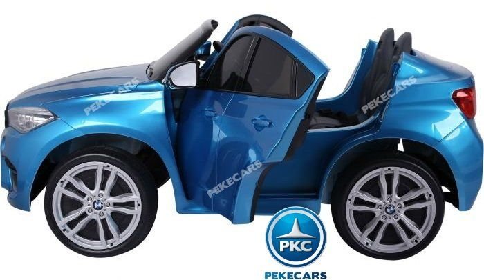Para edades de 1 a 7 años. Fantástico coche eléctrico para niños de 2 plazas BMW X6 en color Azul metalizado. Equipado con apertura de puertas y conexión para MP3, USB y tarjeta micro SD. Este coche eléctrico infantil también incluye asiento acolchado en piel para más comodidad y ruedas de caucho antipinchazos. Ahora con batería 12V/10Ah, con más capacidad de carga y duración que la batería estándar de 7 Ah.