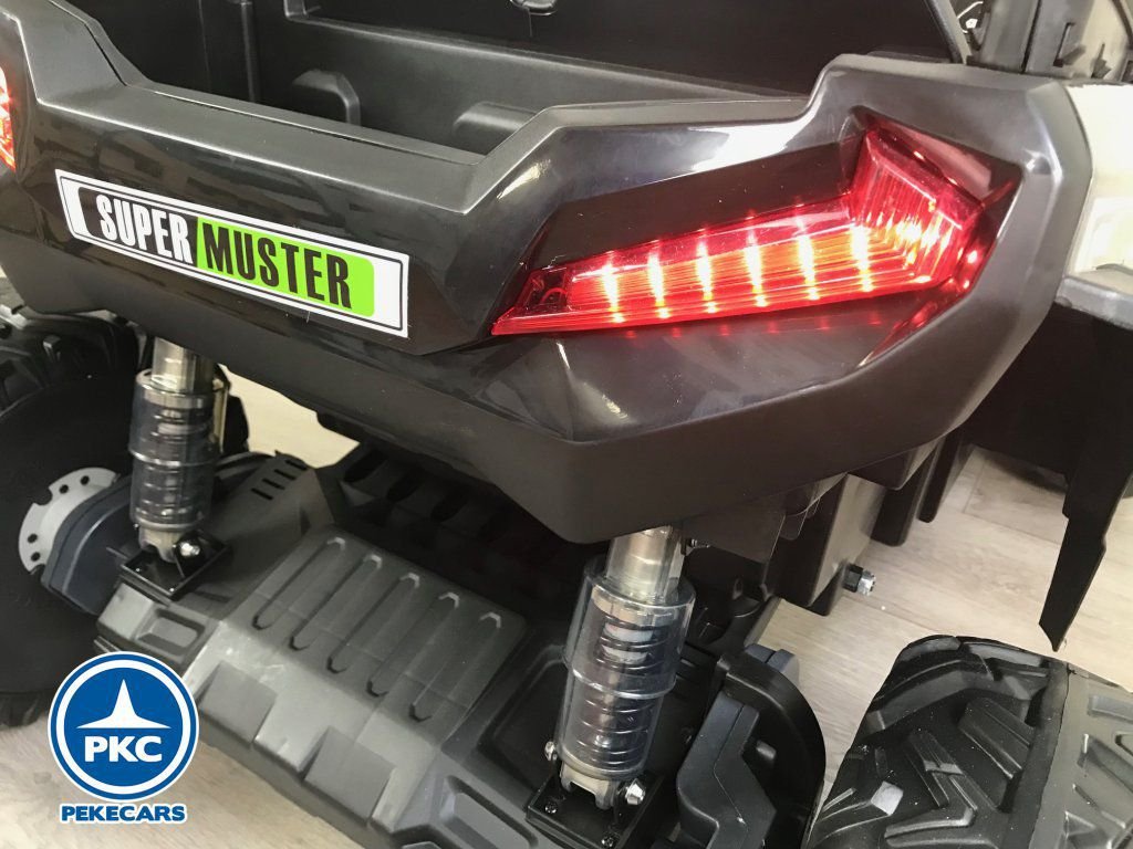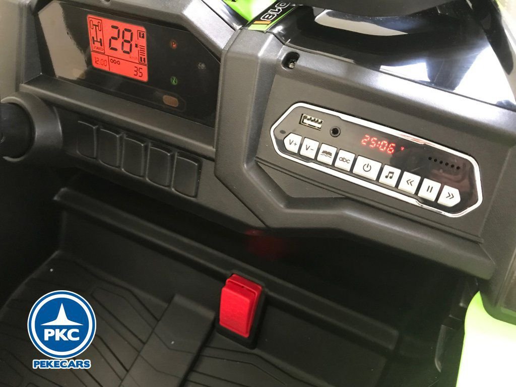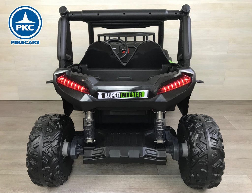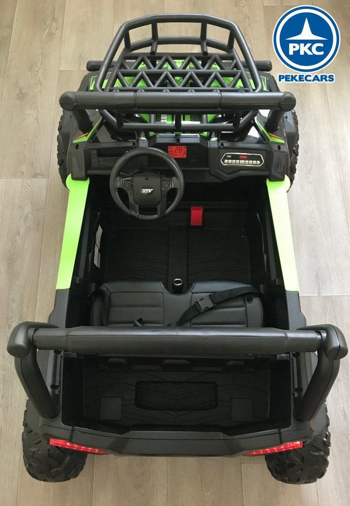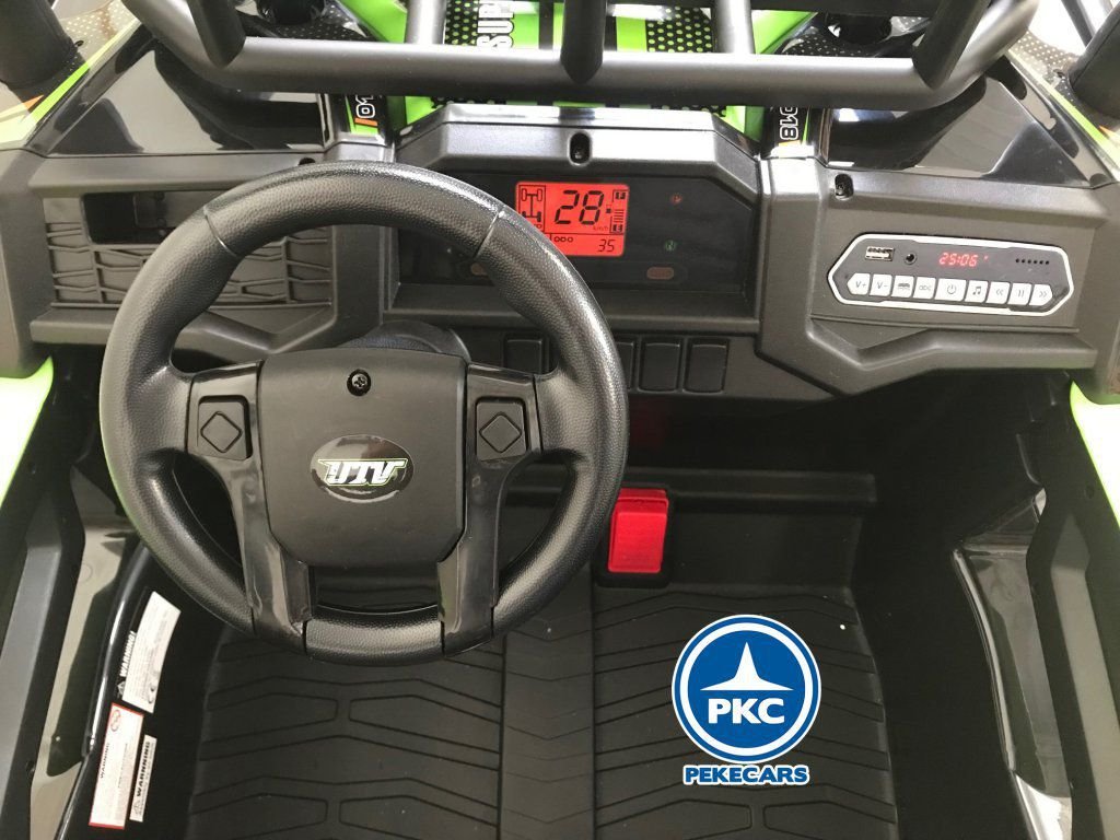 Este Buggy posee dos potentes motores de 24V , ruedas de caucho antipinchazos pensadas para todo tipo de terreno, 2 plazas con asientos acolchados en polipiel con cinturón individual y todo esto con un mando radiocontrol 2.4G con el que los padres pueden dar rienda suelta a sus hijos o tomar completo control de este y en caso necesario hacer uso de la parada de emergencia.