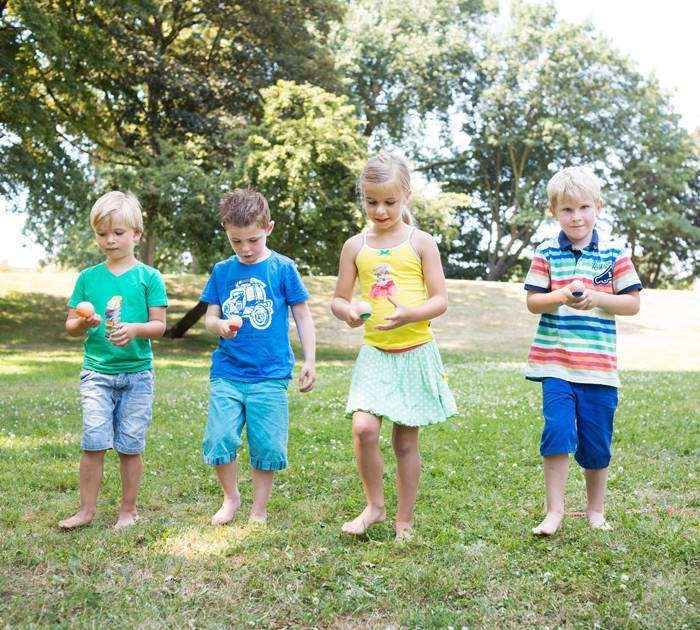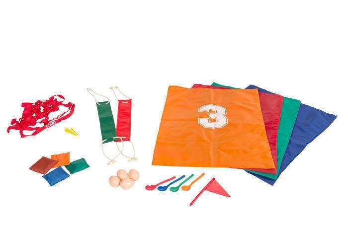 Set de distintos juegos, ideal para fiestas infantiles.  Para hacer carreras de: – Sacos  – Cuchara y huevo  – Sacos de arena de equilibrio  – Doble, atando una cinta a los tobillos