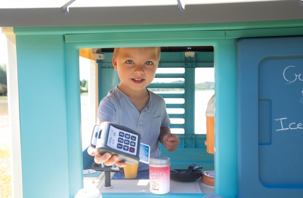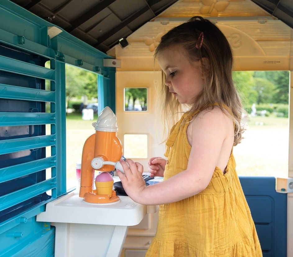 ¡Dale originalidad a tu jardín con la casita Sweet Corner de Smoby! Esta casa infantil es perfecta para interior y exterior por su tamaño y su resistencia. Es una casa tematizada como un puesto de venta de dulces para llevar. Equipada ventana corredera, ventana abierta en la parte posterior y una portezuela en la fachada delantera.