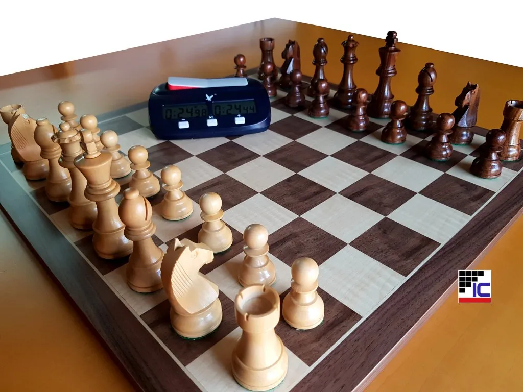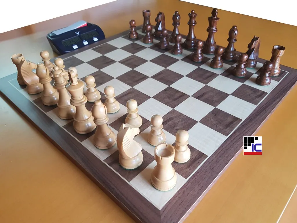 Conjunto de ajedrez que incluye tablero de nogal, piezas DGT Timeless y reloj oficial FIDE Inforchess