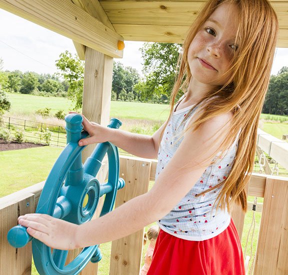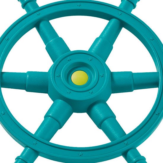 El Gran timón de barco hace un sonido cuando gira. Los niños se imaginarán que están navegando un barco o tal vez una nave espacial.