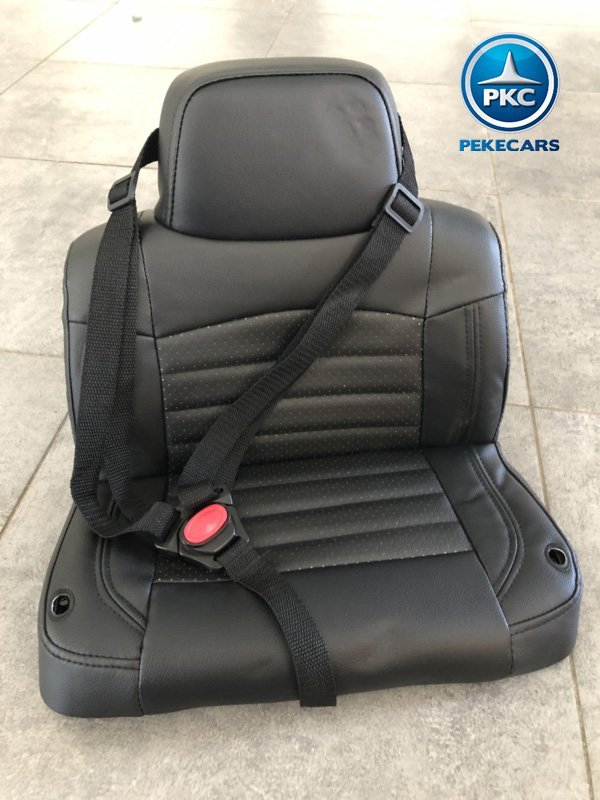 Fíjate que también hemos prestado atención a la seguridad y la comodidad de los pequeños conductores. El asiento es cómodo y está fabricado en poli piel con un cinturón de 3 puntos de anclajes. Las puertas son totalmente funcionales, para darle más realismo a este gran coche infantil.