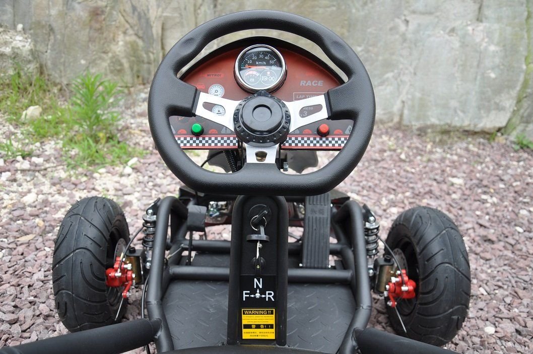 Este fantástico Kart, tiene la estructura de acero, asiento cómodo con cinturón de seguridad, frenos de disco hidráulicos a las cuatro ruedas , incluye marcha atrás, neutral y marcha adelante con tres controles de velocidad parental, tanto hacia adelante como hacia atrás, que lo hacen un excelente Karts con el que sus hijos disfrutarán.