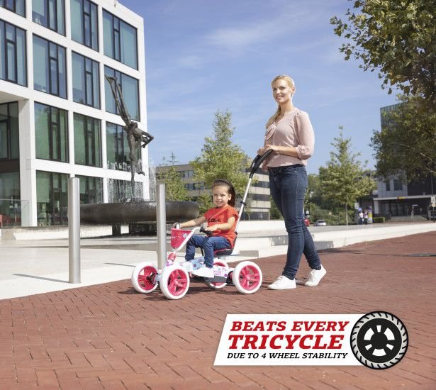 El kart Berg Buzzy Bloom 2 en 1, por su distintivo colorido, esta pensado para las mas pequeñas. Porque a ellas también les gusta la velocidad. Además, incluye cesta para poder transportar sus juguetes. Podrá pasear, explorar y competir… Todo lo que desee hacer con este kart. Nada podrá detenerla!