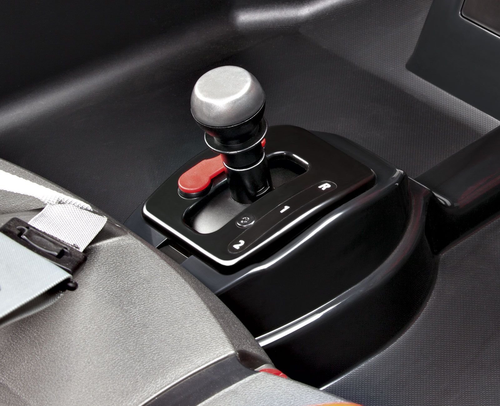 – Palanca de cambio con dos velocidades y marcha atrás. (La segunda velocidad puede ser bloqueada por un adulto cuando el niño todavía no está familiarizado con la conducción.)