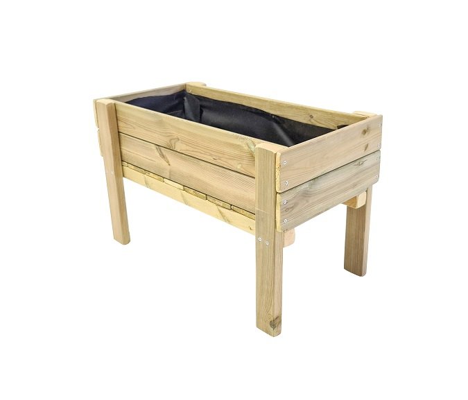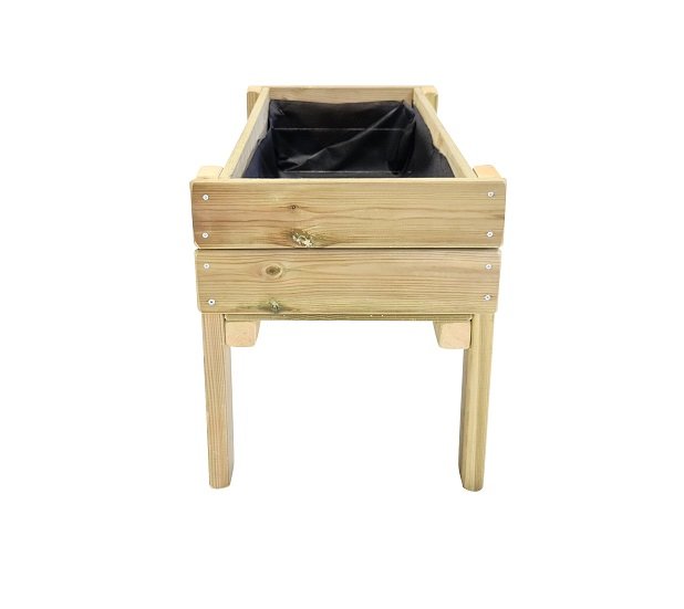 La mesa de cultivo Fortis Junior con patas es muy robusta e incluye una barrera geotextil para proteger la madera de la tierra.