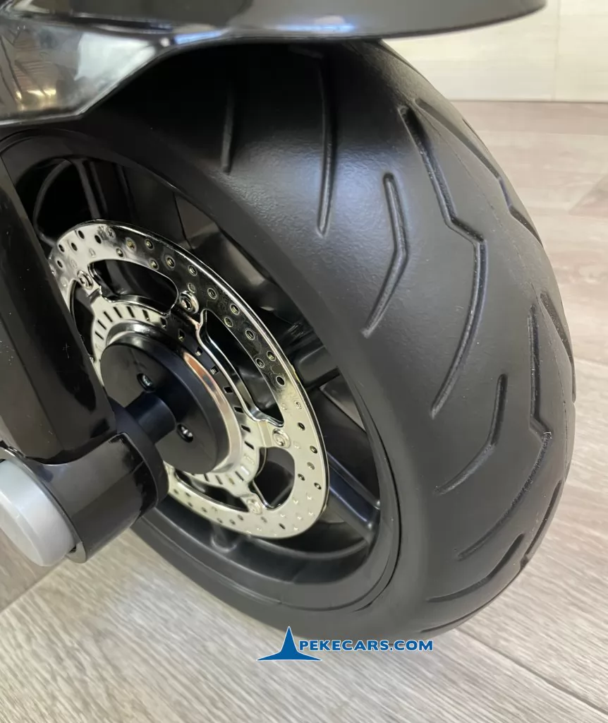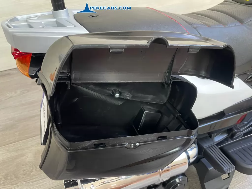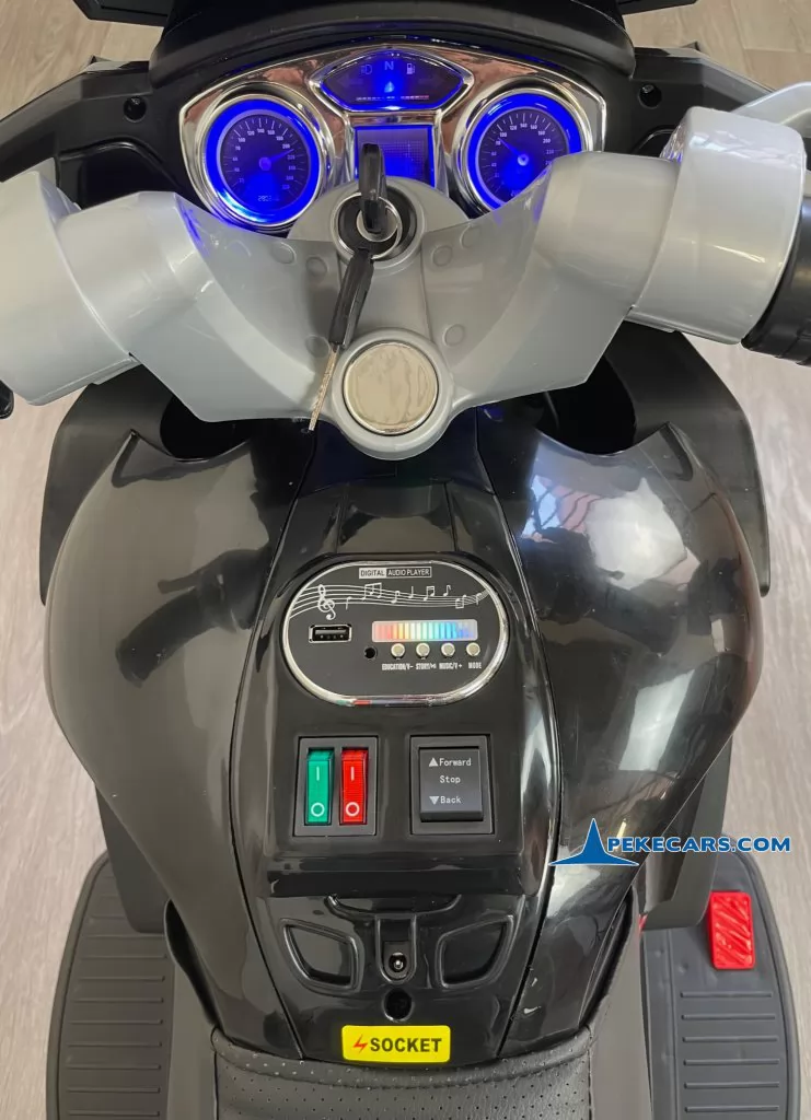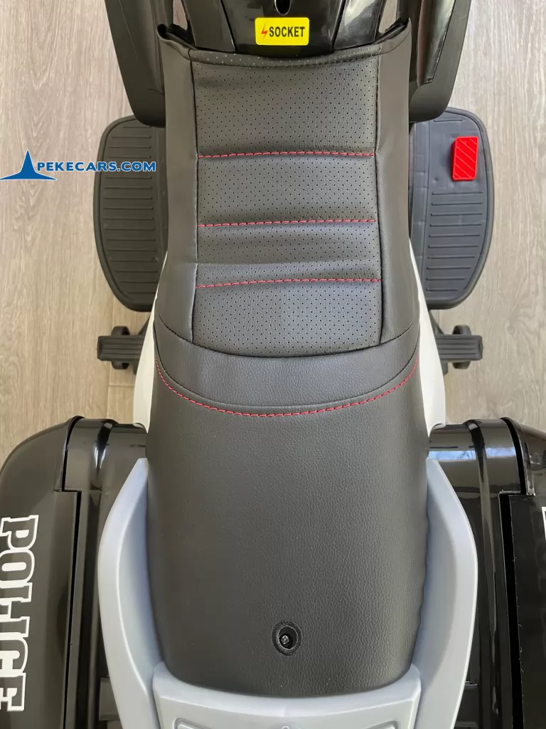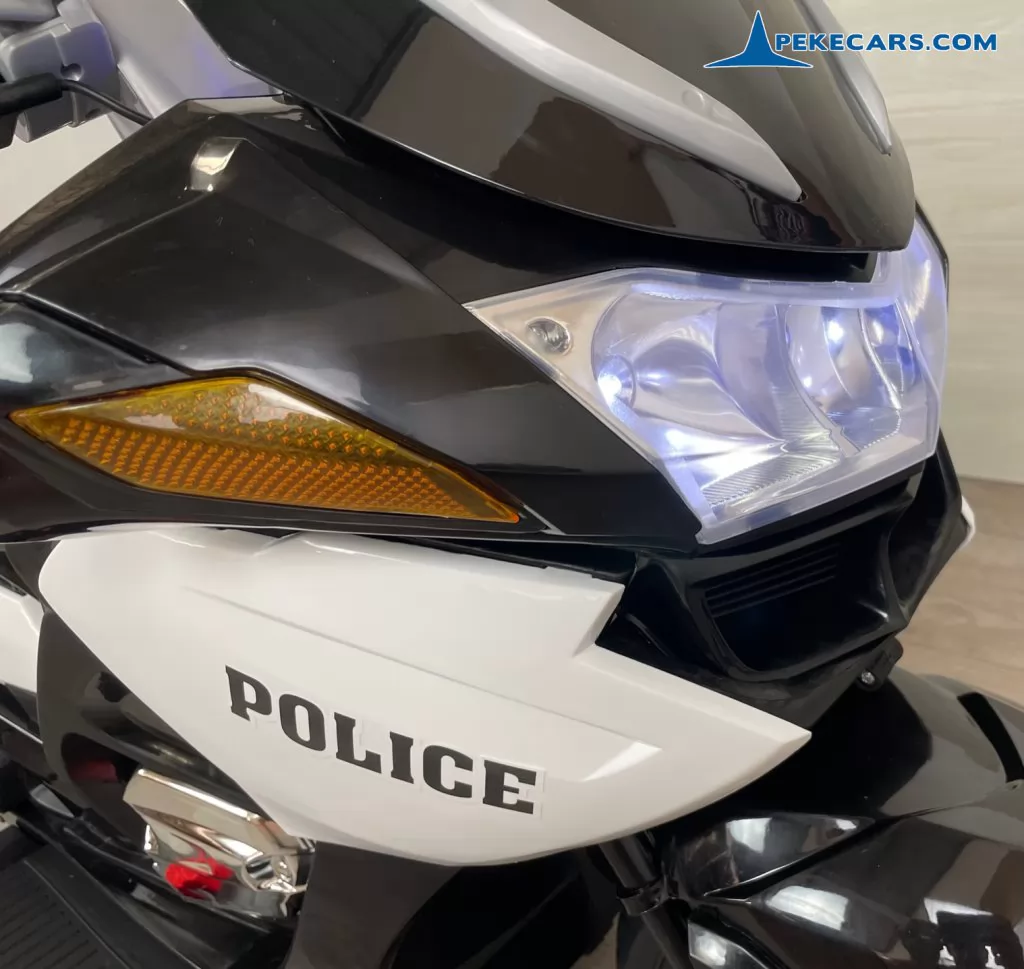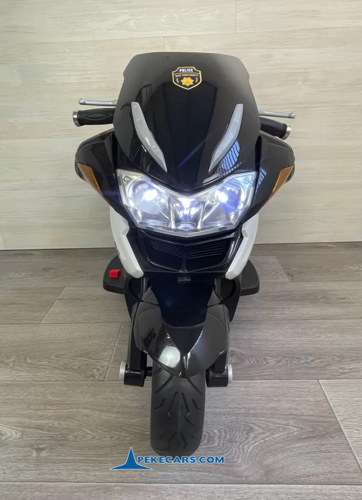 No te pierdas la nueva moto electrica de policia en color negro y blanco con funcion de MP3 y acelerador en el puño. Con una batería de 12V/7Ah optimizada por los mejores fabricantes, esta gran moto de policia es capaz de llevar un niño hasta los 8 años o a dos niños mas pequeños de unos 4 años.