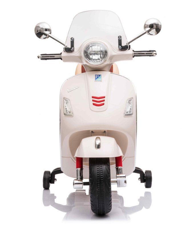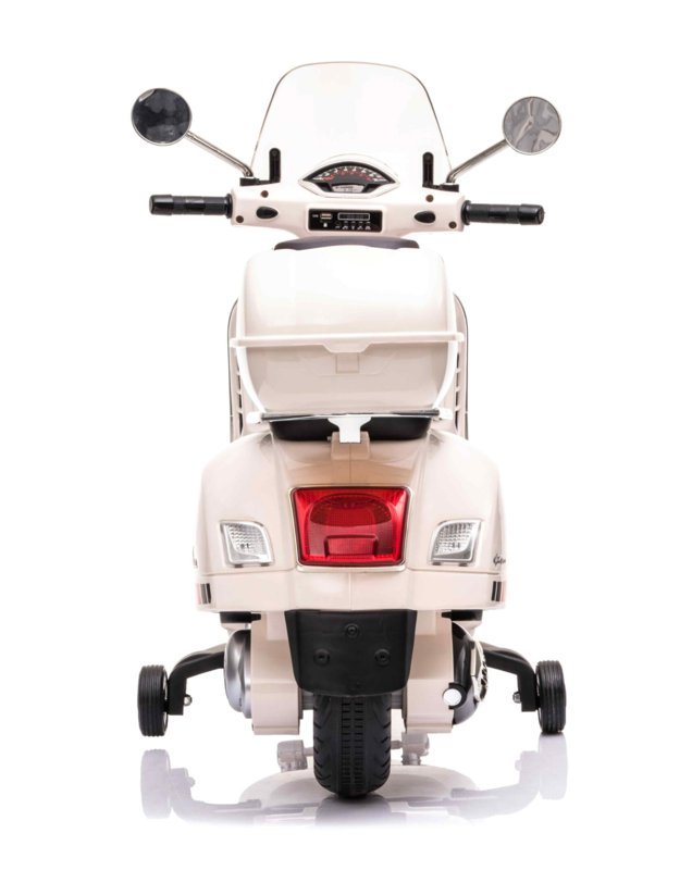 Scooter de diseño atemporal convertida en un verdadero icono del estilo Italiano, apta para niños de hasta 5 años, dispone de 2 motores grandes de 12V,