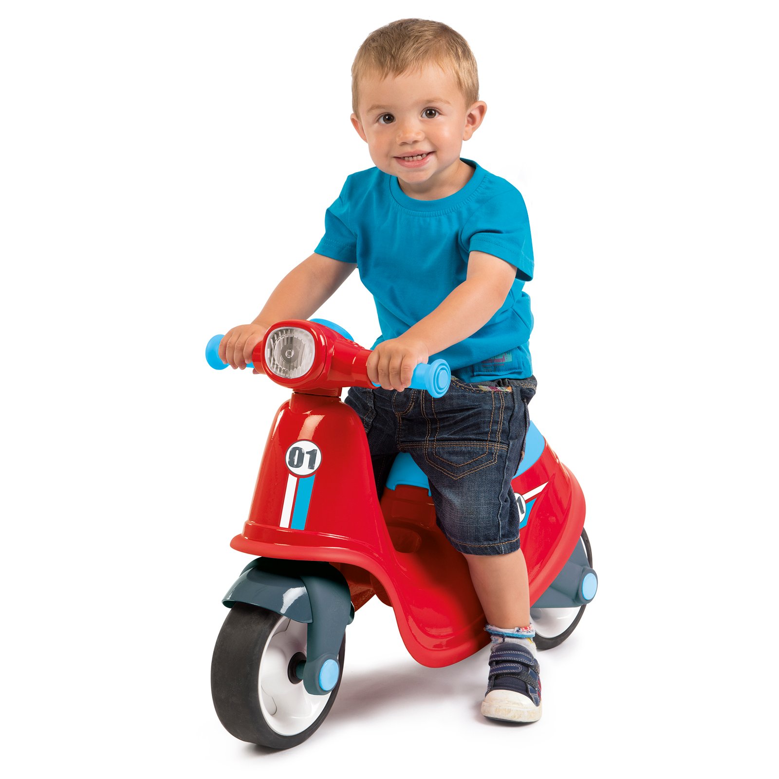 Divertida moto correpasillos con diseño de scooter clásica, frontal muy realista. El scooter está equipado con una llave de ignición mecánica para girar y un compartimiento secreto bajo el asiento con espacio de almacenamiento adicional. Un limitador del ángulo de dirección también asegura una alta estabilidad antivuelco. Su bajo centro de gravedad hacen de este scooter un juguete seguro.
