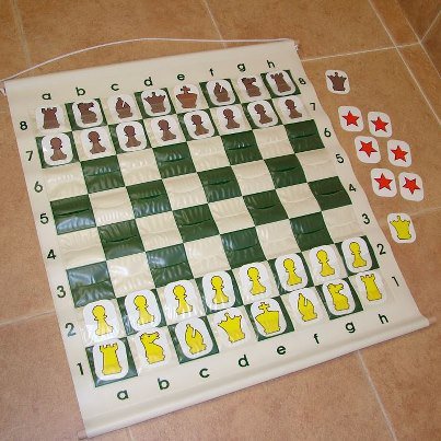 Tablero mural enrollable, práctico y económico.   Ligero, de fácil transporte y almacenaje. Ideal para la enseñanza del ajedrez.