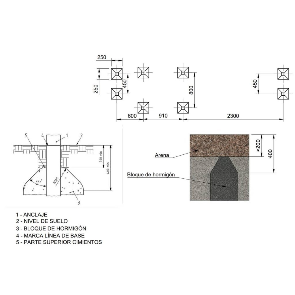 Requiere un área de seguridad de 28.6 metros cuadrados o un espacio rectangular de 7.15 x 4.00 metros.